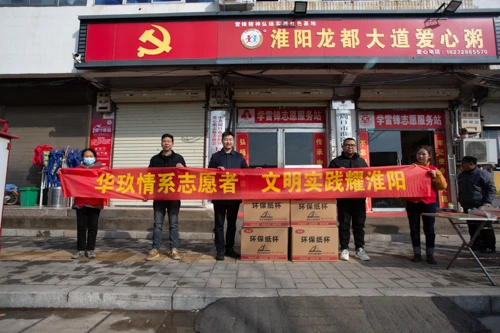 华玖健康产业有限公司副总经理张志一行深入志愿者服务站,向坚守岗位的志愿者赠送环保纸杯等物资,并参观服务站活动展板。在工作人员细致讲解中,张志详细了解了爱心粥屋的日常运营及志愿服务的创新模式,对志愿者们“无私奉献、传递温暖”的精神深表敬意。